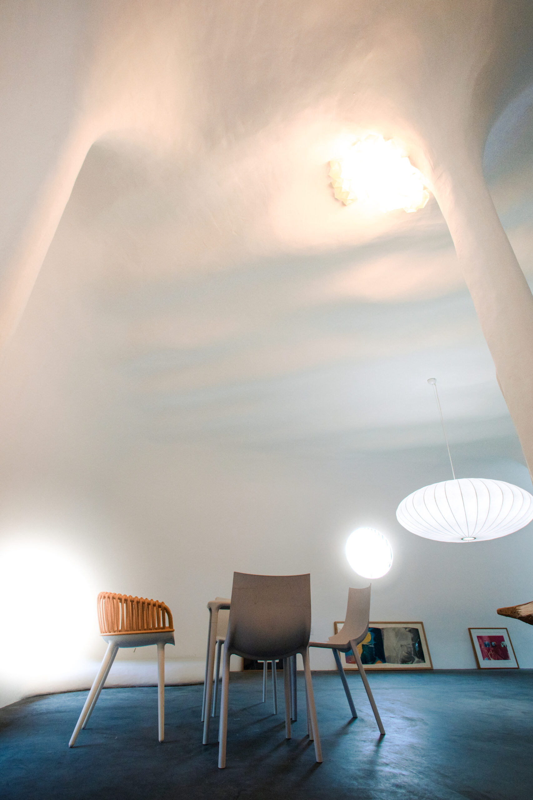 小さな建物ながらも中は本漆喰で仕上げられた開放感ある